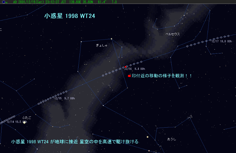 1998 年 11 月にリンカーン研究所チームが 18 等級で発見した小惑星 1998 WT24が、12 月 16 日に地球へ 0.012 天文単位(約 180 万 km)まで接近して、9 等級まで明るくなりました。