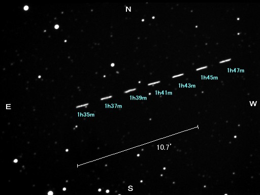 小惑星 1998 WT24 が地球に接近、そして星空の中を高速で駆け抜ける。