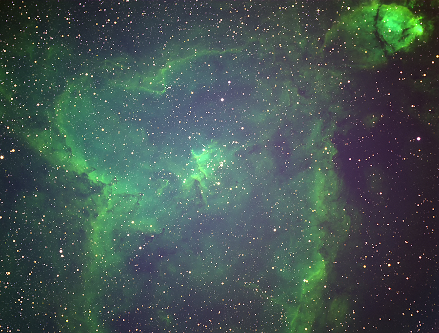 カシオペヤ座のオープンハート星雲を自宅からナローバンドで撮影しました。 |