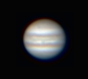 冷却CCDカメラによる初めての木星の画像です。 1秒露出は長すぎました。