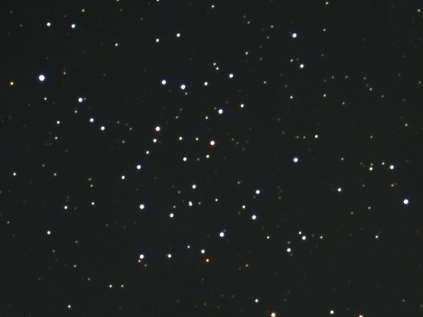 口径10cm望遠鏡に、低倍率の広視界型アイピースを使えば、視野に数十個の星が見えてかなり美しい。