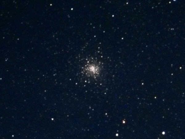 口径10cm望遠鏡では、倍率を上げても星雲状に見えるだけで、周辺を星に分解できない。