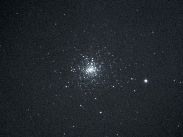 口径20cmの望遠鏡でも、倍率を高めてようやく周囲の星が分解できるかどうかといったところ。口径30cm以上では、微光星が中心まで密集しているようすが観察でき、かなり見応えがある。