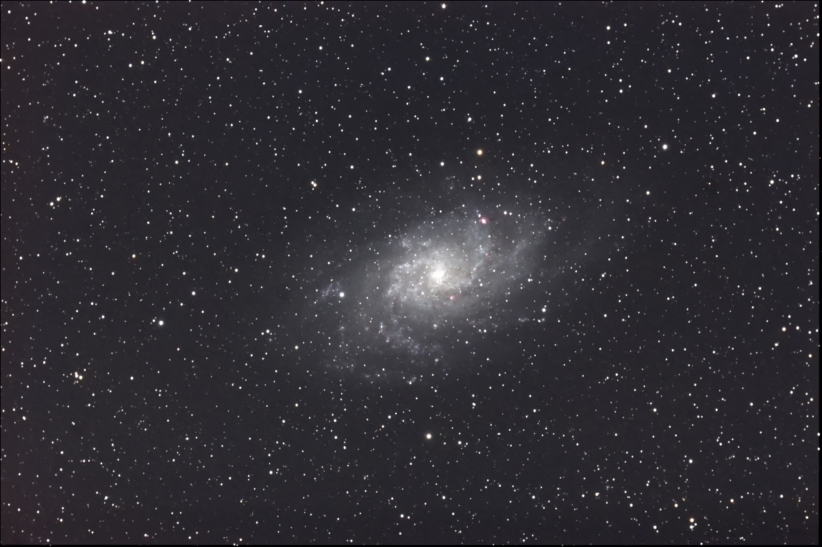 アンドロメダ座の隣に位置するさんかく座にある、満月の倍ほどもある大きな系外銀河。写真では大きく広がった2本の腕が見事に写り回転花火銀河とも呼ばれている。M31の円盤部がかなり傾いていて、渦巻を実感するにはやや不向きなのに対し、こちらはほぼフェースオン(円盤部が垂直にわれわれを向いている)なので、渦巻構造がよくわかり、迫力がある。ただ、腕の巻きかたは、M81などに比べるとやや散漫で、不規則な印象を受ける。