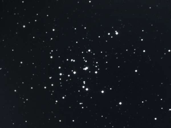 口径10cm望遠鏡の低倍率では、明るい粒の星が60個ほどまとまっていて、