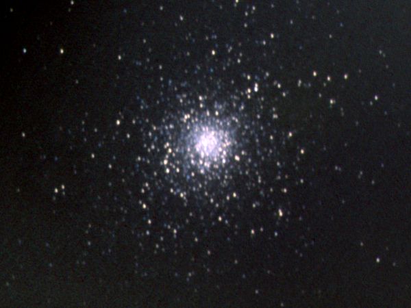 口径10cm60倍では、中心が明るい大きな丸い星雲状に見え、120倍では周囲が星に分解でき、球状星団の美しさが感じられるようになる。