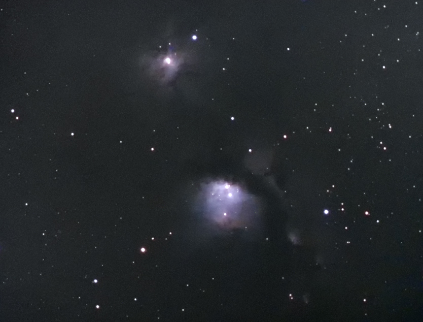 M78星雲と言えば ウルトラの星で有名ですね。 望遠鏡で見ると星雲の中に二つの恒星があり「豚の鼻」の様にも見えてしまうのは私だけでしょうか? |