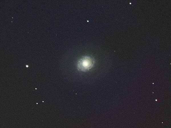 口径10cm望遠鏡の60倍では、銀河というよりは小さな球状星団のような丸い星雲状に見える。