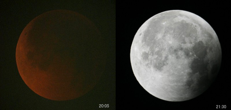 撮影データ : ISO 400 20:05 (皆既) 4秒 21:30 (半影) 1/200秒 jpeg保存