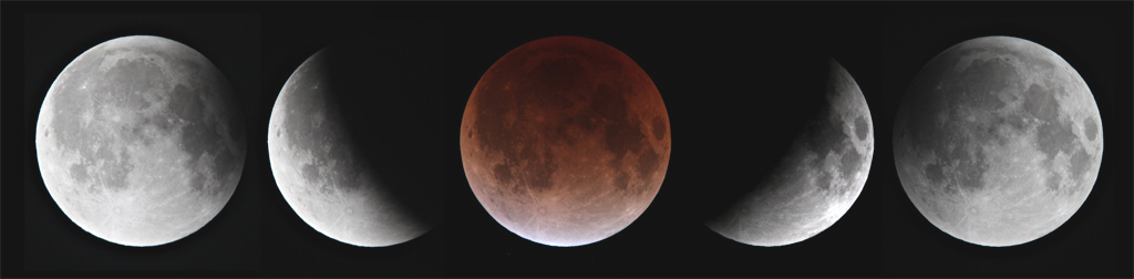 撮影機材 : D76mm fl 600mm + 2倍 テレコン (F16) + Canon EOS Kiss Digital X5 撮影データ : ISO 800 (部分食) 1/500秒 23:32 (皆既) 4秒 jpeg保存 |