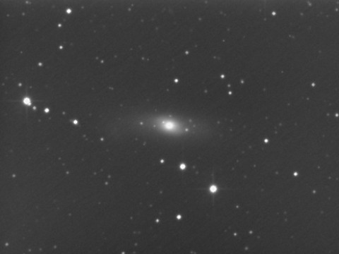 NGC1023 ペルセウス座 銀河 赤経:02h40m24.0s 赤緯:+39゚04'00" 光度 9.5等 視直径 8.7′ 撮影データ 2006年 12月 6日 D250mm f1250mm F5.0 反射 L=2×2ビニング ビットラン BJ-32L 冷却CCDカメラ (-10℃) IDAS LPS-P1 L=2分×24 ステライメージ5 画像処理 撮影地 / 群馬県太田市 コメント NGCにしては明るい渦巻銀河です。 M31の小型版のようですね。