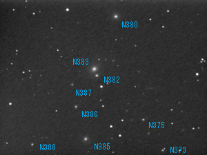 うお座とアンドロメダ座の境界線付近にある銀河です。 NGC373 NGC375 NGC380 NGC382 NGC383 NGC385 NGC386 NGC387 NGC388