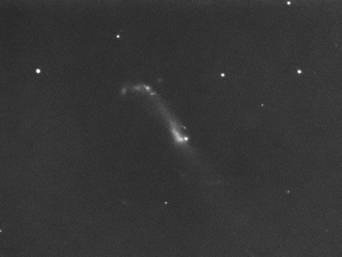 NGC4656 りょうけん座 銀河 赤経:12h44m00.0s 赤緯:+32゚10'00" 光度 10.4等 視直径 13.8′ 撮影データ 2006年 4月 30日 D250mm f1250mm F5.0 反射 L=2×2ビニング ビットラン BJ-32L 冷却CCDカメラ (-10℃ IDAS LPS-P1 L=2分×11 ステライメージ5 画像処理 Neat Image 撮影地 群馬県太田市 コメント 透明度が悪いのでここまでの写りです(^^; しかし不規則な形をしていますね。