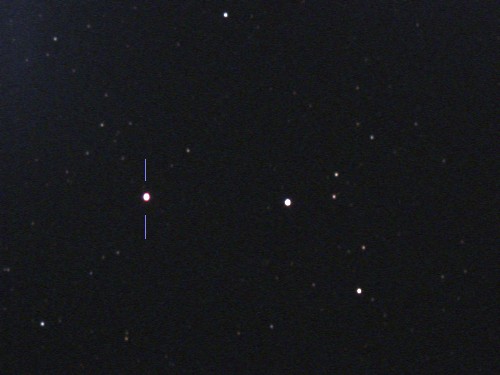 <コメント> 太田宇宙の会会員 金井清高さん 発見の 新星をやっと撮影できました。 もうだいぶ減光してしまい残念ですが記念撮影ってことで・・・ 9等位でしょうか? |