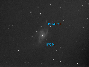 PGC 46256 おとめ座 銀河 赤経:13h16m56.0s 赤緯:-16゚35'28" 光度 15.09等 視直径 1.32′ ? 撮影データ 2011年 3月 31日 D250mm f1250mm F5.0 反射 L=2×2ビニング ビットラン BJ-32L 冷却CCDカメラ (-10℃) IDAS LPS-P1 L=2分×7 ステライメージ5 画像処理 撮影地 群馬県太田市 コメント おとめ座にある銀河です。 NGC5054 PGC46256