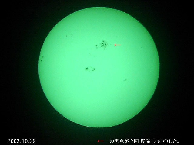 2003.10.29 太陽の表面で大規模な爆発(フレア)が起こりました。