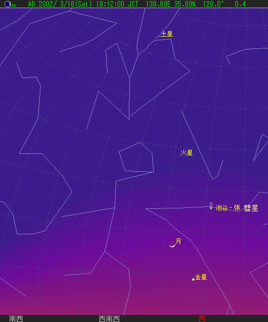 今年は春が早いのでしょうか? ここ最近、夕方の西空の池谷・張(チャン)彗星を撮影しているのですが、春の霞空、透明度が非常に良くなく彗星の尾がなかなか写ってくれません(^^;