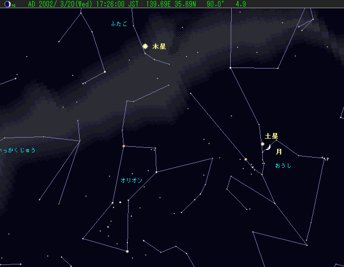 2000.01.25 土星食(群馬では見かけ上の大接近)の様子です。 |