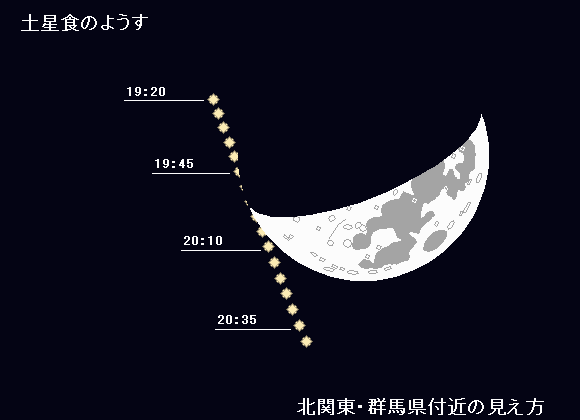 1月25日未明 土星が月に隠される天体ショーが見られました。 今月20日も土星食が関東より北部で見ることができます。 関東より西の地方では食にならず見かけ上の大接近が楽しめます。