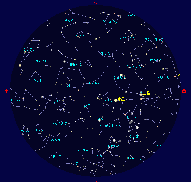 | 6 | 水 | 天頂の土星と木星 下弦の月 | |