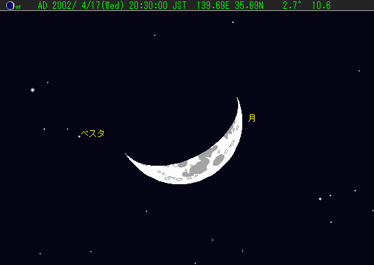 小惑星ベスタ(8.4等)と月が最接近 17日 (水)