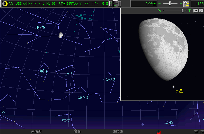 9日(月) おとめ座のγ星(2.7等)と月が並ぶ