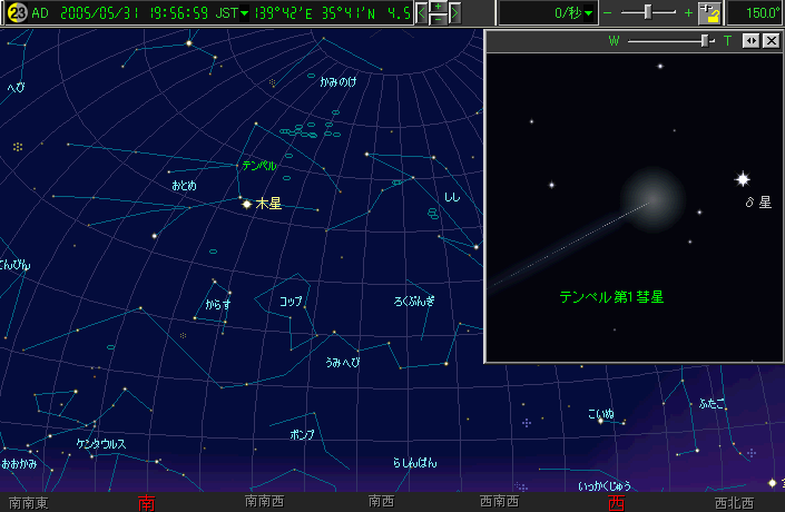 31日(火) 9P/テンペル第1彗星がおとめ座δ星と並ぶ