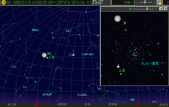 15日(日) プレセペ星団 と 土星 と 月が並ぶ