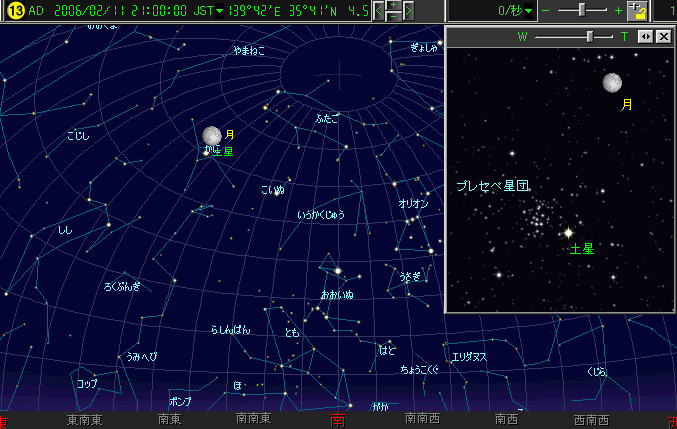 11日(土) 月と土星とプレセペ星団が並ぶ