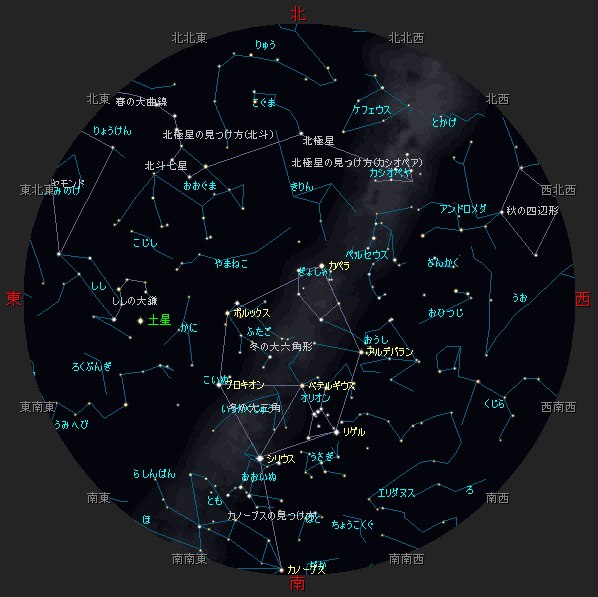 ☆ 星図の作成は アストロアーツ マルチメディア天文シュミレーション ステラナビゲータ を使用しております。 ☆ 詳しい星空ガイドは アストロアーツHP、月刊星ナビ、月刊天文ガイド 等を見てください。 ☆ 星空ガイドは、月刊星ナビ、月刊天文ガイド、天文年鑑 を参考に作成しました。 |