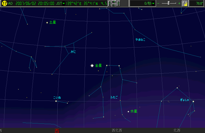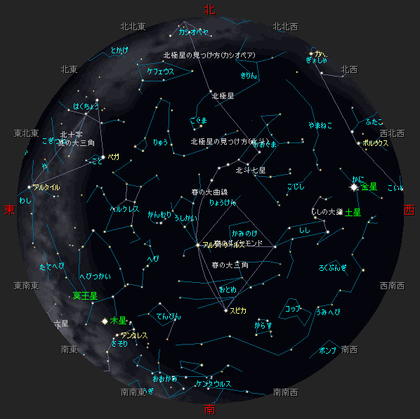 ☆ 星図の作成は アストロアーツ マルチメディア天文シュミレーション ステラナビゲータ を使用しております。 ☆ 詳しい星空ガイドは アストロアーツHP、月刊星ナビ、月刊天文ガイド 等を見てください。 ☆ 星空ガイドは、月刊星ナビ、月刊天文ガイド、天文年鑑 を参考に作成しました。 |