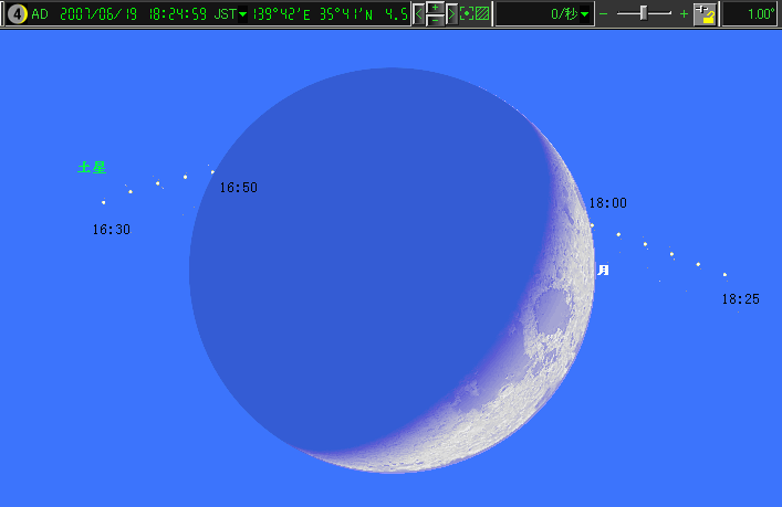 望遠鏡でないと観ることはできませんが晴れたなら青空に浮かぶ月と土星が見られるでしょう。