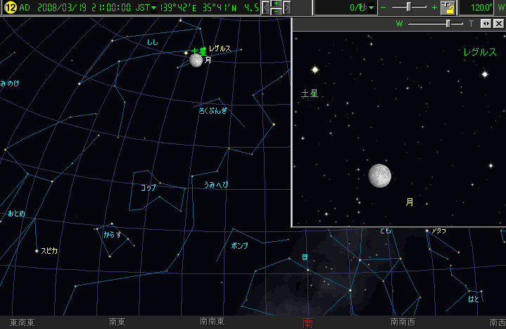 | 19 | 水 | しし座の1等星 レグルス と 土星 と月が並ぶ |
