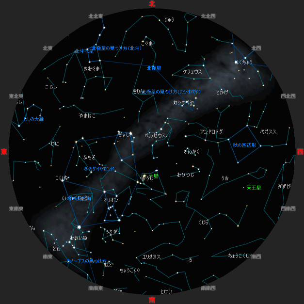 ☆ 星図の作成は アストロアーツ マルチメディア天文シュミレーション ステラナビゲータ を使用しております。 ☆ 詳しい星空ガイドは アストロアーツHP、月刊星ナビ、月刊天文ガイド 等を見てください。 ☆ 星空ガイドは、月刊星ナビ、月刊天文ガイド、天文年鑑 を参考に作成しました。 |