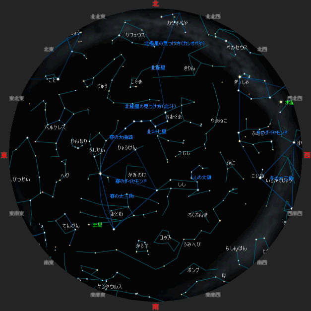 ☆ 星図の作成は アストロアーツ マルチメディア天文シュミレーション ステラナビゲータ を使用しております。 ☆ 詳しい星空ガイドは アストロアーツHP、月刊星ナビ、月刊天文ガイド 等を見てください。 ☆ 星空ガイドは、月刊星ナビ、月刊天文ガイド、天文年鑑 を参考に作成しました。 |