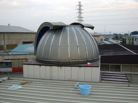 台風14号の大雨の時、ちょっとドームに雨漏れ発見。 にじむ程度でしたがドームのベースのスチール部分が錆びたら困るので、早々シーリングを施すことにした。 秋晴れの下、屋根の上はとっても気持ちが良くビールでも呑みたい気分です(^^) しかし、ここから落ちたら痛そうなので我慢ですね〜(^^;