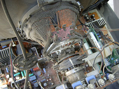 中央の太いコード(高圧ケーブル)を触ると感電するので注意