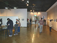 2日目は写真を吊り下げ、展示写真のバランスを考える。 |