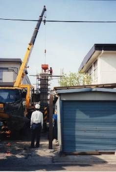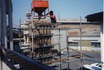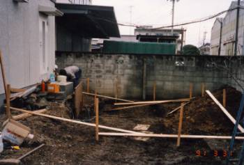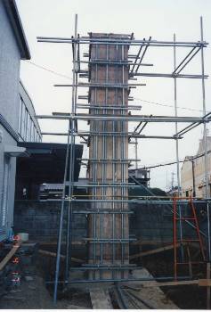 4/24 基礎、コンクリートピラーの完成です。 巨大な石塔の様です。 |