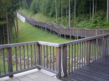 木道は緩やかな階段になっていて歩きやすく、野鳥のさえずりも聞こえてきます。 |