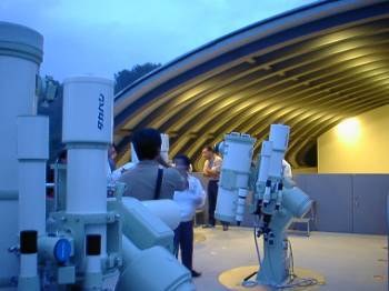 | 夕食の後、観望棟のスライディングルーフに移動しての実技講習、実技試験です。