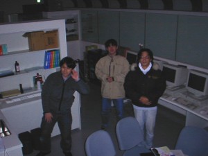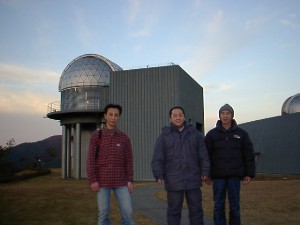 左の方がいつもお世話になっている ちむらさん です。 ピント合せや望遠鏡操作を手伝って頂き、スムーズに撮影開始することが出来ました。 |