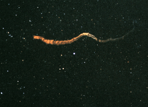 流星痕は高空大気の移動につれて少しずつ流れていき、数分間見えて しばらくすると消えてしまいます。