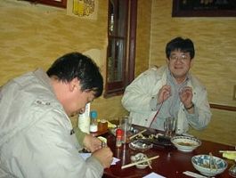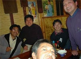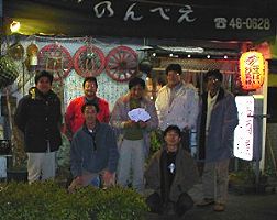 | そして 「居酒屋 のんべえ」 にて 呑んべえ大会(新年会) です。 おっと! 市川氏がペンを持っている(謎) |
