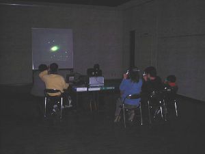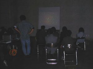 プロジェクタで3D画像を映写、みなさん 3Dメガネを使い 立体天体写真を楽しんでいました。