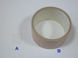 A ペットボトル等の平らなプラ板 B ガムテープ |