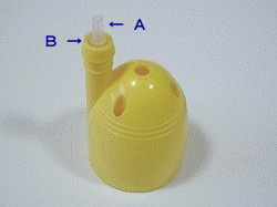 ポンプの流水出口の根元に(A)5mmのガムテープを出口の直径より太くなるように巻き付ける。 |