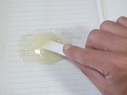 硬化したらガムテープをはがします。 5分で硬化しますが、完全に硬化するまで30分はかかります。 |