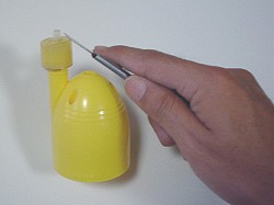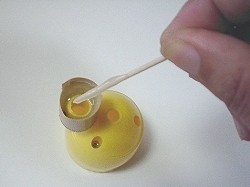 つまようじでボンドを口まで流し込む。 この時、エアが入らないように流し込み つまようじで突っついてエア抜きをします。 |