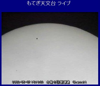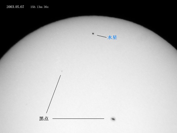 7日は朝から曇り空、昼を過ぎても厚い雲に邪魔され太陽が顔を出さない、 もう諦めていた14時30分頃から太陽の位置がわかり始めてきた・・・ 昼間の天体ショー 水星の太陽面通過という珍しい現象が3年半ぶりに起きた。 太陽 ・水星 ・地球が一直線に並んだわけですね。 すご〜〜〜く 小さいですがこれも立派な日食なのです。